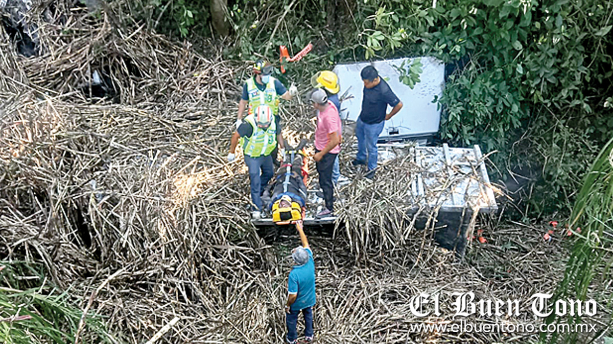 Cuitláhuac.- Una movilización de las corporaciones de auxilio así como de la Policía Municipal y Tránsito Estatal, es la que se generó, tras el reporte al número de emergencias 911 de que un camión cargado con varias toneladas de caña, cayo del puente El Zapote quedando en río, mientras que el conductor al resultar lesionados fue rescatado por grupos de auxilio y con ayuda de paramédicos de SAMUV trasladado a un hospital para su atención médica.