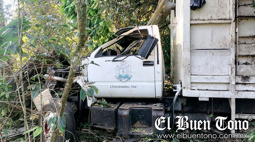 CHOCAMÁN.- El conductor de un camión compactador de basura perdió el control de la unidad y terminó fuera de la carpeta asfáltica en la carretera federal Fortín-Huatusco, a la altura de El Jonote, entre Chocamán y Monte Blanco; solo hubo daños materiales.