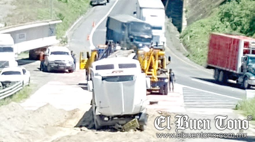 El percance ocurrió ayer por la mañana, cuando un vehículo de color blanco, con placas de circulación del SPF, circulaba con dirección a Veracruz transportando una trabe de concreto a bordo de un remolque tipo plana.
