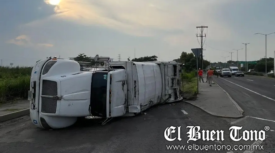 Veracruz.- Un camión de Limpia Pública volcó esta mañana en la carretera federal Veracruz-Xalapa debido al mal estado de la vía. El conductor, Anastasio “N”, de 60 años, resultó lesionado en el accidente.