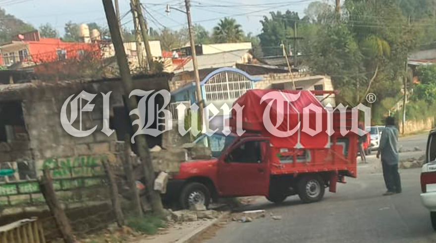 Coscomatepec, Ver – Una camioneta Nissan chocó contra una vivienda, esta mañana de miércoles, en la colonia San José, en la comunidad Tozongo.