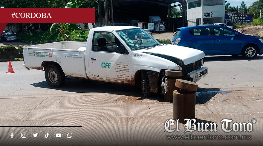 Córdoba, Ver. – Esta mañana, una camioneta perteneciente a la Comisión Federal de Electricidad (CFE) se impactó contra una base metálica ubicada en el bulevar Tratados de Córdoba.