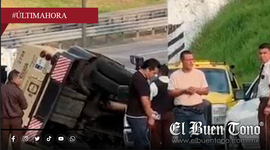 De acuerdo con los primeros reportes, el accidente se habría originado presuntamente por una falla mecánica, lo que provocó que el conductor perdiera el control de la unidad y terminara volcada a un costado de la vialidad. A pesar de lo aparatoso del percance, no se reportaron personas lesionadas de gravedad.