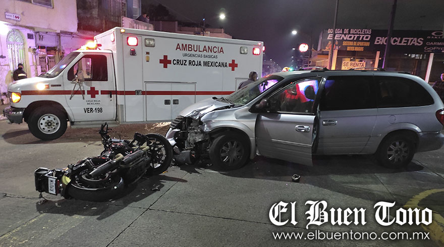CÓRDOBA.- Con múltiples lesiones resultó una pareja que viajaba en una motocicleta Harley Davidson edición especial, luego de que se impactaran contra una camioneta Town&Country de la cual su conductora María Teresa Serrano Lara, no respetó la preferencia de paso en el cruce de la avenida 1 y calle 20.