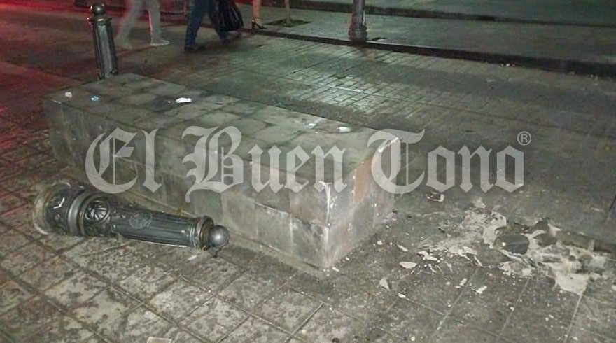 Córdoba, Ver.- Una camioneta particular, que logró huir del lugar, se subió a la banque y derribó dos postes de concreto, esta noche e la calle 3 entre avenidas 3 y 5 en el primer cuadro de la ciudad.