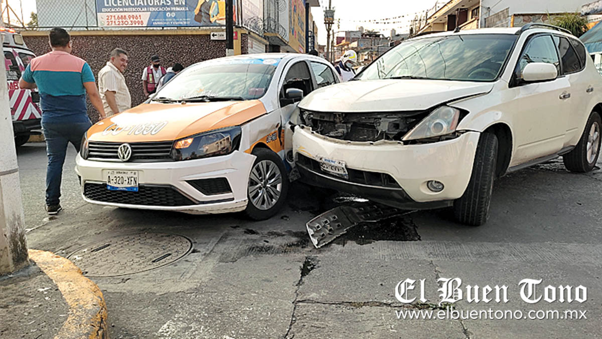 El percance se registró cuando el conductor de la camioneta particular, color blanca y con matrícula de circulación YBS-299-A, circulaba sobre la calle 11 y al llegar a la avenida 13, de la colonia Centro, no respetó la preferencia de paso, por lo que impactó al taxi CO-1850, con placas A-320-XFN.