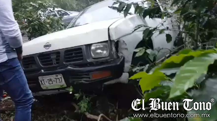 Huatusco. – Una camioneta terminó dentro de una finca de café después de que el conductor perdiera el control en una curva de la carretera que conecta Huatusco con la localidad de Tlamatoca, cerca del Puente Angosto.