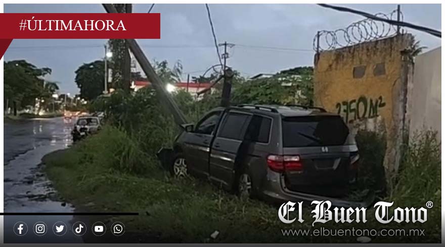 Veracruz, Ver.- La mañana de este domingo se registró un aparatoso accidente sobre la carretera federal Veracruz–Xalapa, a la altura del acceso a la colonia Progreso, donde una camioneta Honda, color gris, modelo Odyssey, terminó severamente dañada tras impactarse contra una barda y dos postes de concreto pertenecientes a la Comisión Federal de Electricidad (CFE).