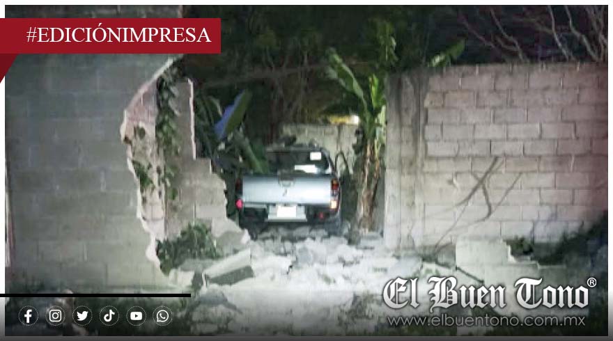 Cuitláhuac. — Una camioneta con 14 personas a bordo, incluidos varios niños, derribó la barda de una casa en obra negra en la comunidad de El Nanche después de que el conductor perdiera el control y se saliera de la vialidad.