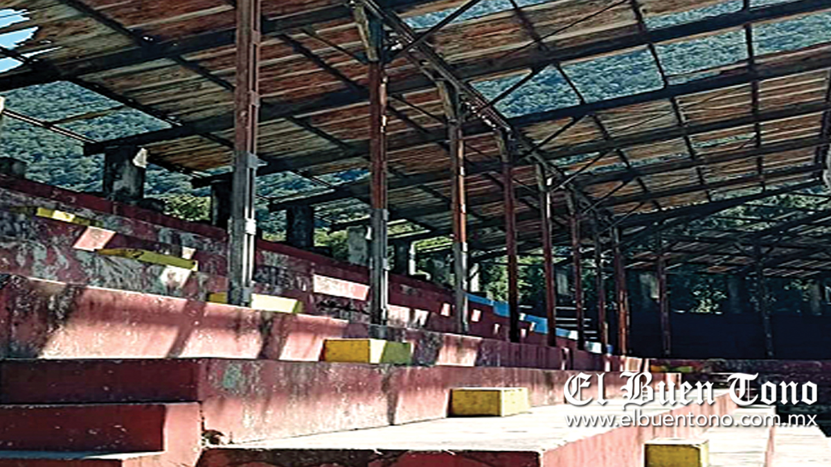 El paso del tiempo y los daños se reflejan en el espacio deportivo, sus gradas y principalmente en el techado de lámina, el cual se ha ido cayendo a pedazos y el peligro de que se desplome es latente.