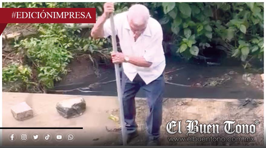 La desesperación llevó a un adulto mayor a destapar el canal manualmente, asumiendo un riesgo que debería ser atendido por los funcionarios.