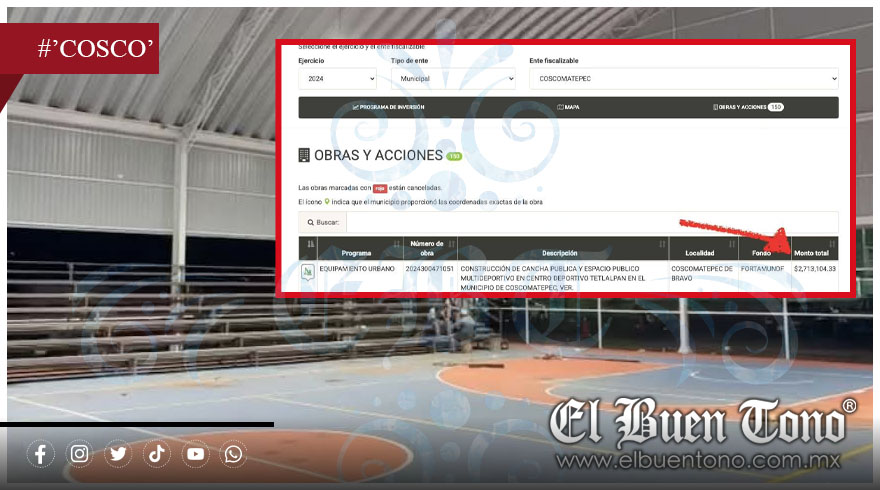 Coscomatepec, Ver.- El Ayuntamiento, encabezado por José Luis Alonso Juárez, gastó 6 millones 713 mil 104 pesos en la construcción de una cancha techada de básquetbol, obra a cargo del ingeniero Gustavo Alonso, hijo del alcalde. Aunque las autoridades presumieron la inversión como un logro histórico, la población no dejó pasar la sospecha: ¿De verdad era lo más urgente para el municipio?