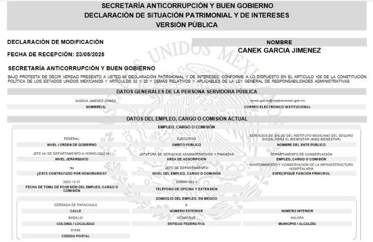 De acuerdo con su declaración patrimonial, el funcionario asumió el cargo desde el 31 de diciembre de 2023, es decir, aún durante la administración estatal de su hermano, lo que ha encendido críticas sobre el uso de influencias dentro de instituciones públicas.