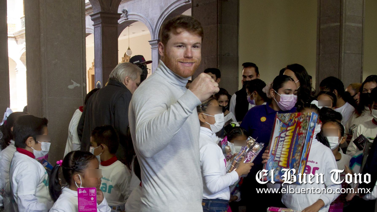 ‘Canelo’ llegó a las 14:00 horas, vestido con un conjunto blanco, con botines del mismo color y gafas oscuras. En el lugar también estuvo Carlos Bremer, propietario de Value, grupo financiero que patrocina al pugilista. El tráiler estaba cargado con 5 mil 500 juguetes.