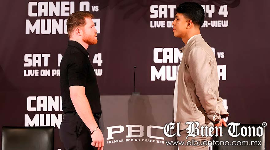 De la Hoya mencionó que ‘Canelo’ lo ha insultado durante la promoción del combate, recordando que Munguía es representado por Golden Boy Promotions. Las palabras del promotor provocaron que ‘Canelo’ se levantara de su asiento y lo increpara, aunque luego se tranquilizó y habló sobre su combate con Munguía, destacando el orgullo de que dos mexicanos disputen los cuatro títulos de peso supermediano.