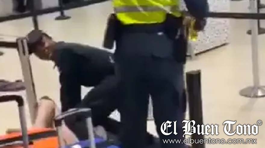 La situación se intensificó cuando la turista se abalanzó sobre otro elemento de seguridad, quien logra sujetarla de los brazos y llevarla al suelo para esposarla. Mientras el personal de seguridad intenta controlar a la joven, se escuchan más risas y comentarios en el aeropuerto de Jamaica. Finalmente, dos oficiales de seguridad mujeres se acercan y logran someter en el suelo a la nudista violenta. Una vez derribada, las oficiales logran sacarla de la sala de espera principal, terminando con el “espectáculo” que la mujer desencadenó.