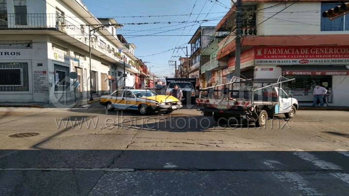 Córdoba.- Dos personas que viajaban a bordo del taxi marcado con el número CO-2060, resultaron lesionadas la mañana de este jueves, debido a que la unidad chocó contra una camioneta, propiedad de una empresa ferretera, ya que aparentemente uno de los conductores no respetó la luz roja del semáforo, ocasionando el accidente justo en el cruce de la avenida 3 con calle 15.