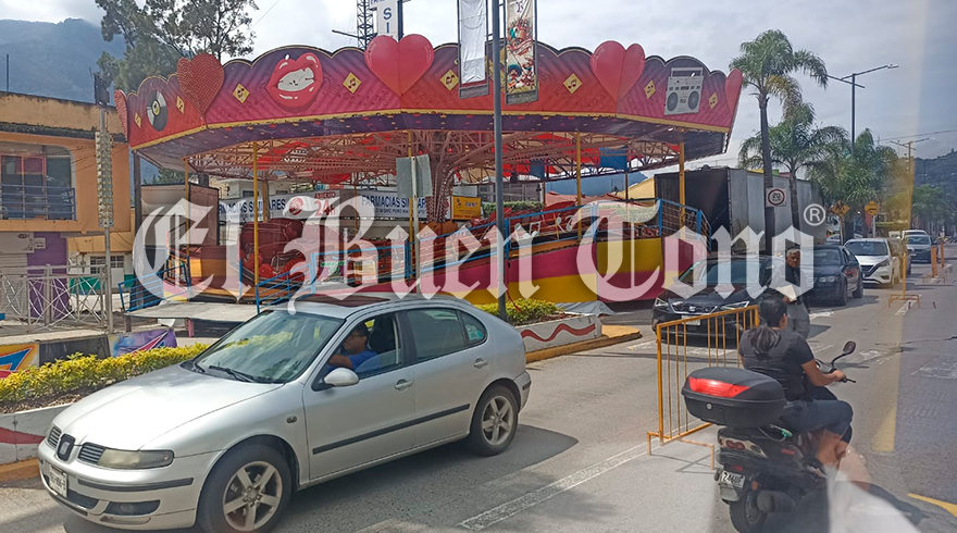 Río Blanco, Ver.- El Ayuntamiento de Río Blanco ha generado un caos vial al colocar los juegos mecánicos de las fiestas patrias en el carril de descenso hacia Orizaba, obstruyendo la circulación vehicular.
