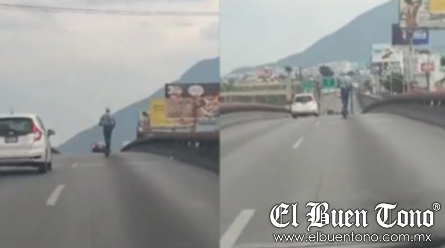 El material fue grabado y compartido por un automovilista, en el cual se observa al hombre poniendo en peligro su integridad física tras circular en su scooter en medio de los automóviles a alta velocidad.
