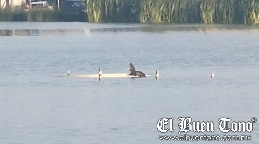El cocodrilo que ha sido famoso por ser captado en las aguas de la laguna cuando sale a tomar el sol, ahora fue grabado en video desde las alturas.