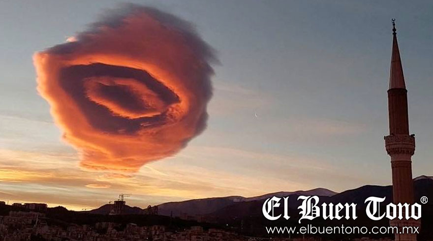 Una nube enorme con forma de ovni apareció sobre una ciudad de Turquía, cambiando de color naranja a rosa y luego a amarillo, a medida que el amanecer caía sobre ella.