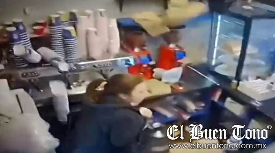 Al momento del impacto se logra apreciar como todo el local tiembla mientras que la mujer trata de buscar un lugar seguro.