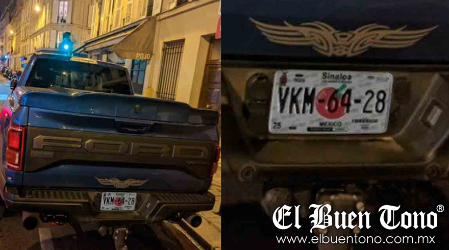 Fue a través de Twitter que el usuario “Lord Bad Guy”, subió una imagen a su red social en la que presume estar en la ciudad luz, pero se encuentra con una camioneta negra, Pick-Up, estacionada con placas de Sinaloa.
