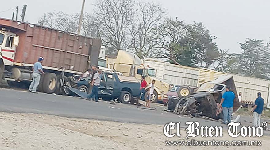 CUITLÁHUAC.- Una carambola registrada la tarde de este martes en la carretera federal Córdoba -Veracruz, a la altura del libramiento, dejó dos personas fallecidas, una mujer vecina de Orizaba y un hombre de Mata Clara; así como cuatro heridos.Participaron tres camionetas y un chiquifull cañero, lo que originó cierre de circulación y movilización de grupos de auxilio.Las personas lesionadas fueron atendidas por paramédicos y trasladadas para su atención hospitalización.La circulación fue cerrada, mientras autoridades policiacas acordonaban.Según los primeros informes, se pudo conocer que uno de los fallecidos se desempeñaba como talachero y se encontraba reparando una unidad automotriz cuando se produjo la colisión múltiple.Otra persona que viajaba en una camioneta, es la segunda víctima de esta carambola, que dejó daños materiales de consideración.Los involucrados fueron una camioneta placas YG-1294 A, así como otra con placas YE- 4776 -A, de la que murió una persona de Mata Clara, de nombre René Corona, de 40 años.El tercer vehículo fue un chiquifull cañero vacío, placas XW-59-293, y la cuarta unidad, una camioneta de lujo, placas UST 565 H.