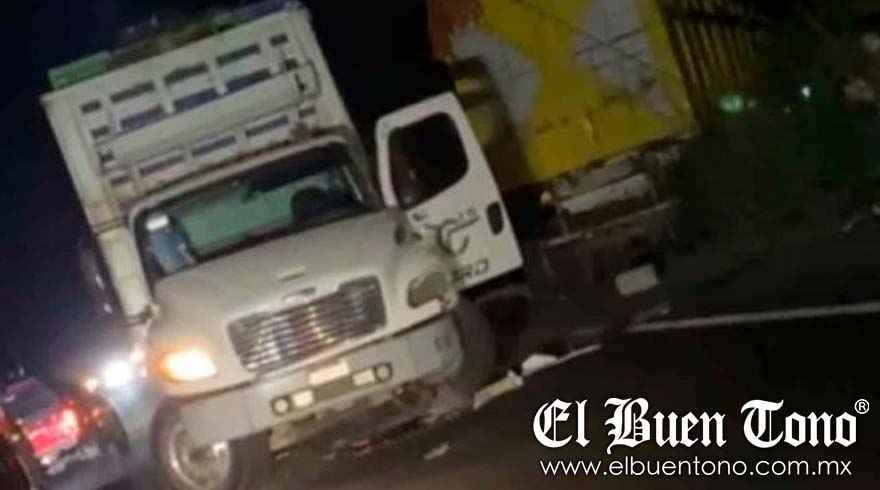 El fatal accidente ocurrió la noche de este viernes. El camión tipo torton, que transportaba rejas de plástico, intentó rebasar otra unidad, provocando el accidente.