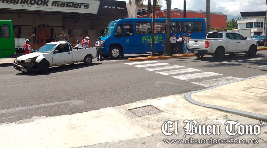 El presunto responsable del accidente, fue el conductor del autobús de la línea Pista, quien no midió su distancia y se impactó por detrás de una camioneta que se encontraba parada en la esquina por el semáforo en rojo.