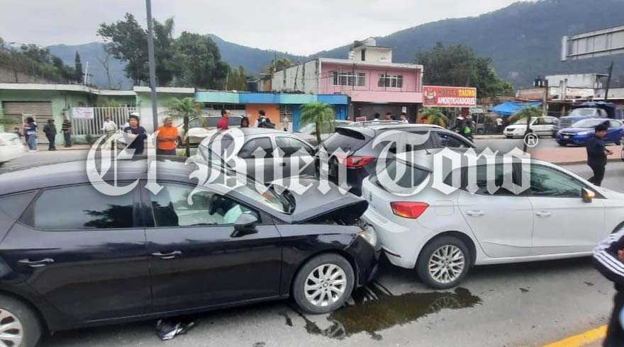 Río Blanco. – Una carambola en la que se vieron involucrados dos vehículos y dos camionetas, dejó daños materiales y afectaciones a la vialidad sobre el Camino Nacional, entre Orizaba y Río Blanco. El accidente sucedió la tarde de este miércoles, donde intervinieron corporaciones de emergencia para brindar auxilio a los conductores.