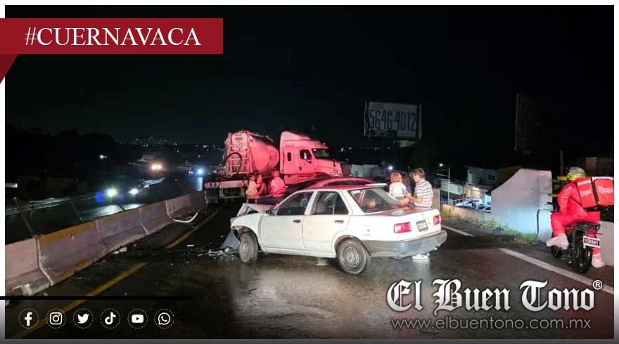 Cuernavaca, Mor.- La noche del lunes, una carambola vehicular provocada por el pavimento mojado y la falta de precaución al conducir, dejó como saldo cinco vehículos con daños materiales sobre el Paso Express, a la altura del Paso a Desnivel Palmira.