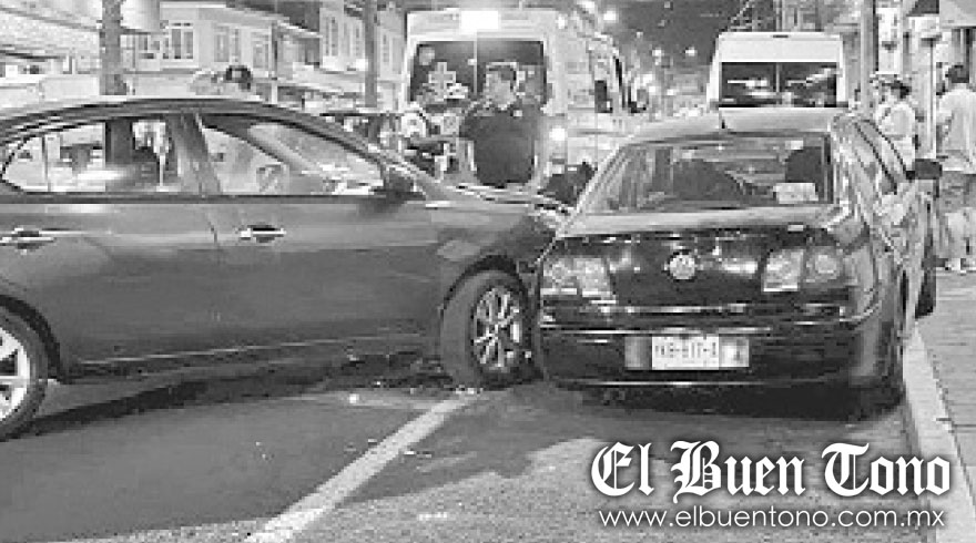 ORIZABA.- Un accidente se registró la noche de este lunes en calles céntricas, luego de que el conductor de un automóvil perdió el control del volante y chocó contra otro vehículo que estaba estacionado afuera de un restaurante.