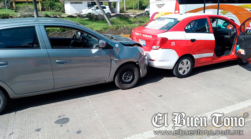 Un automóvil de color gris, placas de circulación YTP-746-A, se impactó contra el taxi 25 de Amatlán.