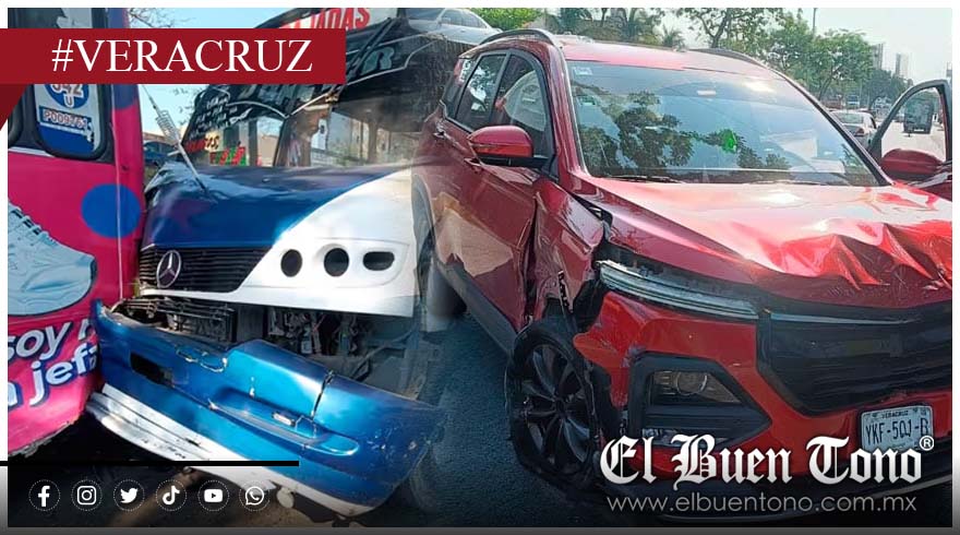 Veracruz, Ver.- Un aparatoso accidente registrado la mañana de este miércoles en la avenida J. B. Lobos, a la altura de la Unidad Habitacional El Coyol, dejó como saldo varias personas lesionadas y un importante caos vehicular.