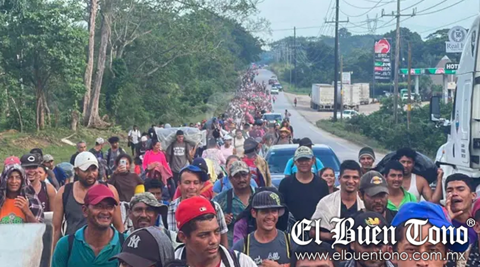 El contingente, integrado por alrededor de 2 mil 800 personas, avanza por el sur de Veracruz después de su pausa en la comunidad de Nuevo Morelos, en el municipio de Jesús Carranza. Su recorrido sigue por la carretera federal Sayula de Alemán-Matías Romero, ocupando un carril completo, lo que generó cierto tráfico durante algunos minutos.