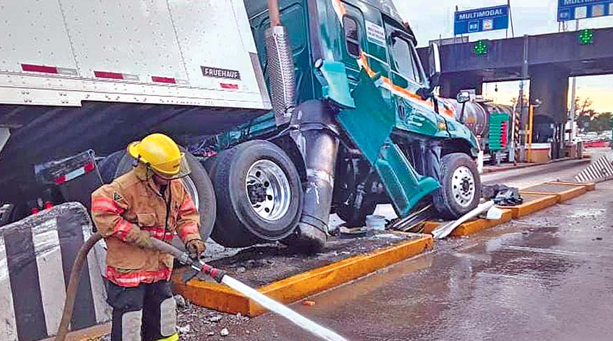 Fortín.- Un tráiler con caja seca estuvo a punto de chocar contra la caseta de cobro en el carril que comprende el tramo Ixtaczoquitlán-Fortín.