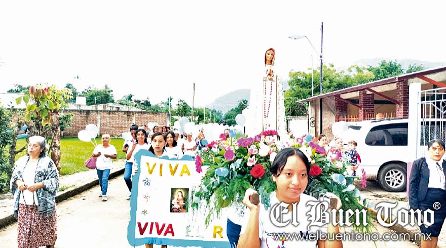 Cuichapa.- Unos 200 fervientes católicos celebraron a la Virgen del Rosario con una peregrinación que realizaron ayer por la tarde en las principales calles hasta llegar a la parroquia, donde el sacerdote Claudio Balderas los recibió y dio la bendición por su participación en la actividad.