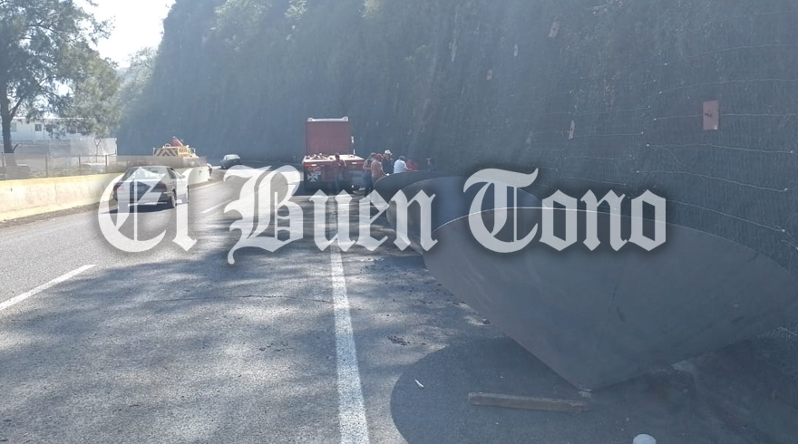 Nogales.- Afectaciones menores provocó la caída de varias estructuras metálicas, que eran transportadas en un tráiler que llevaba acoplada una plataforma, la cual circulaba sobre el carril de descenso de la autopista Puebla-Córdoba, aunque por fortuna no hubo mayores incidentes.