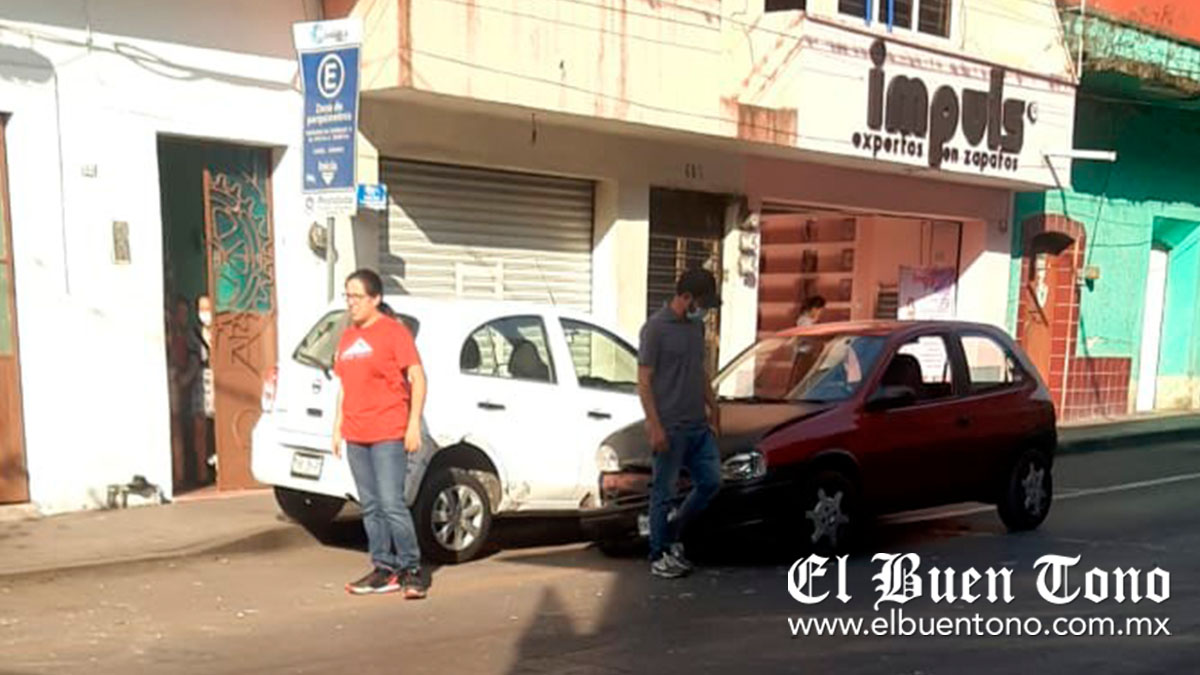 CÓRDOBA.- Por no respetar la luz roja del semáforo, dos conductores de vehículos particulares provocaron un accidente en el cruce de la avenida 1 esquina de la calle 6 en la colonia Centro, el cual originó que el Chevrolet-Chevy quedara en sentido contrario de la avenida, además de impactar a una motocicleta y un Nissan-March que