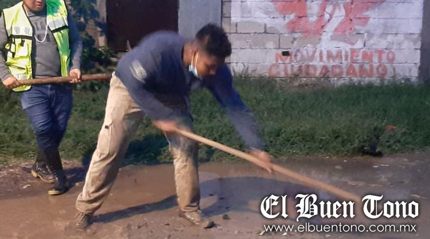 Por su parte, los rescatistas arribaron minutos después y abrieron una zanja que salía de la casa hacia la calle de terracería, para así drenar el agua que fue dirigida hacia el registro que está a la entrada del Campo Famosa.