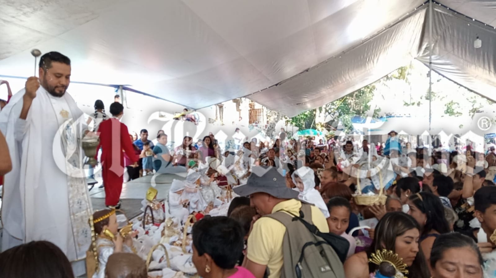 Las madres de familia acercan a sus pequeños a la bendición.