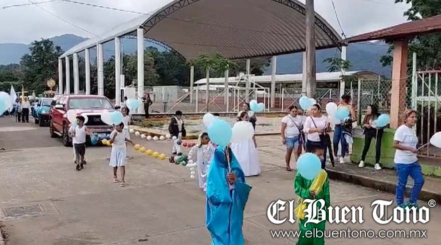 Cuichapa.- Unos 200 fervientes católicos celebraron a la Virgen del Rosario esta tarde con una peregrinación por las principales calles, hasta llegar a la iglesia donde el párroco, Claudio Balderas, los recibió y les dio la bendición por su participación en esta actividad.