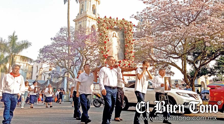 Córdoba.- Familias del mercado Revolución y otros feligreses, realizan recorrido con el Señor de la Misericordia; por las principales vialidades del Centro de la ciudad, portaban imágenes religiosas.