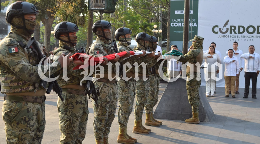 El acto protocolario se celebró en la explanada del parque 21 de Mayo, donde estuvieron presentes la escolta de la armada de México.