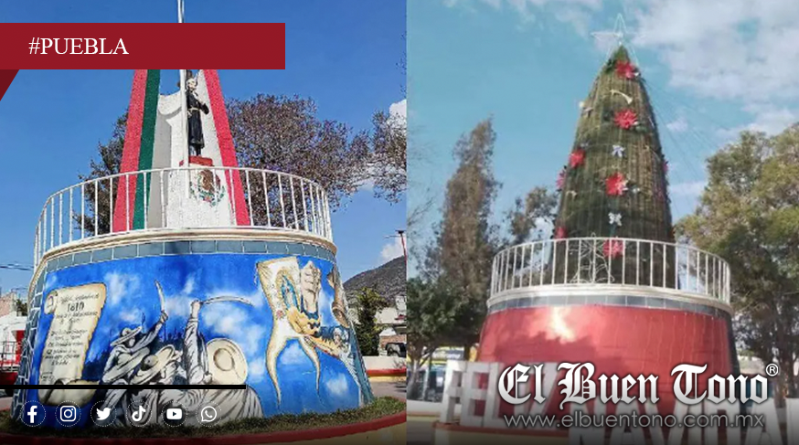 Chapulco, Pue.— La decoración navideña en este municipio del sureste poblano detonó una fuerte polémica luego de que el monumento a Miguel Hidalgo y Costilla, ubicado en el parque central, fuera completamente cubierto para convertirlo en el árbol principal de la temporada decembrina. La estructura histórica apareció forrada con material rojo, luces, adornos y un letrero gigante de “Feliz Navidad”, sustituyendo temporalmente la imagen del héroe de la Independencia y modificando incluso su base, donde se encontraba un mural alusivo al movimiento independentista.