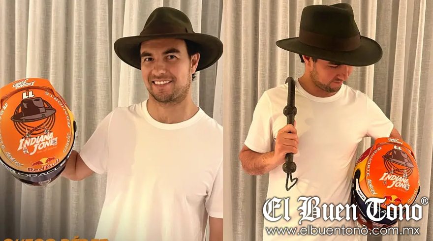 El casco que utilizará Pérez este fin de semana está inspirado en la película Indiana Jones y el dial del destino, que se estrenará en los cines el próximo 29 de junio.