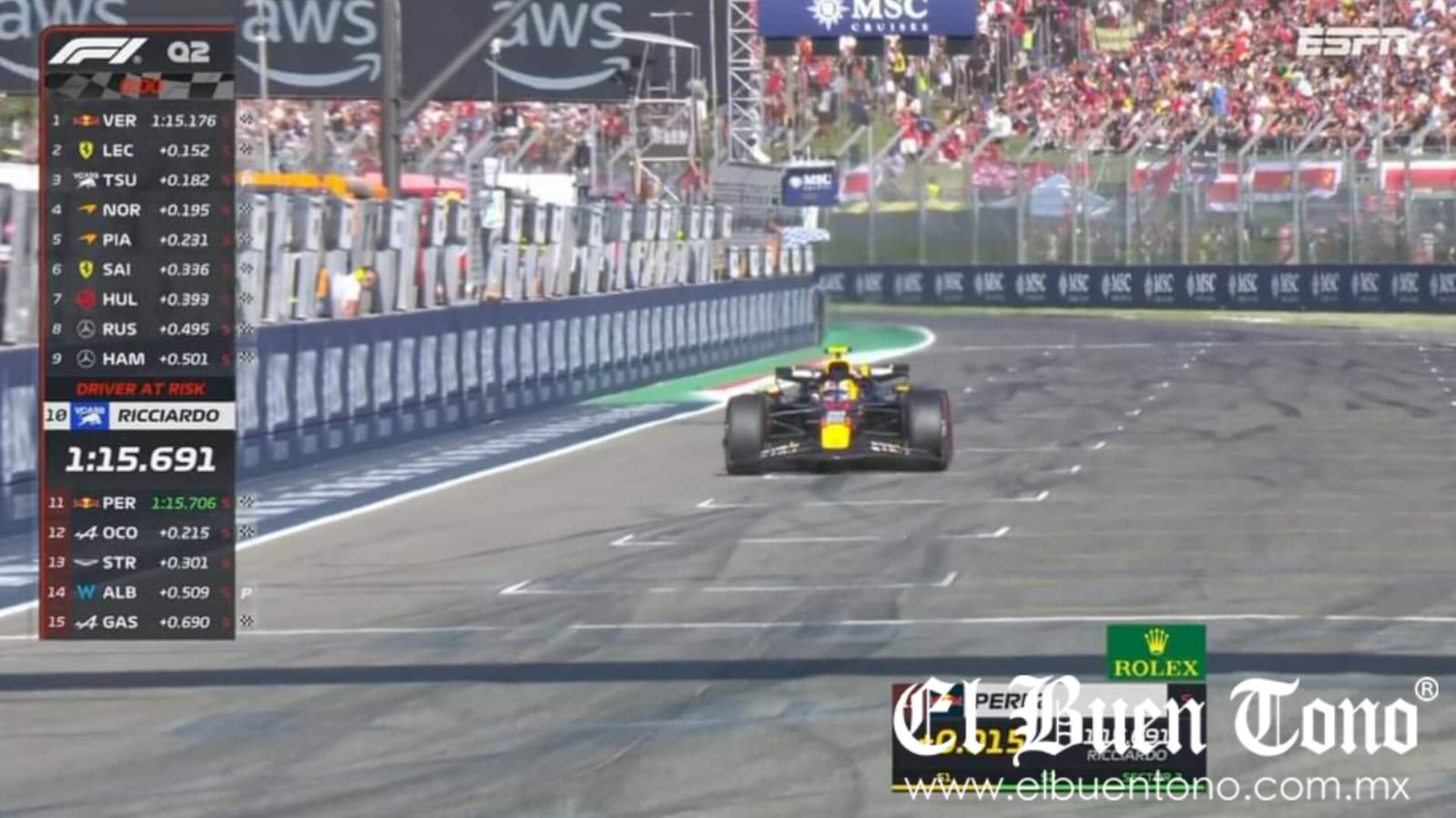 El impacto dañó el alerón delantero del auto y dejó al monoplaza sobre la arena, obligando a los comisarios a detener la sesión y retirar el vehículo. Aunque el choque fue a baja velocidad, los daños en la parte delantera del auto fueron significativos. Este incidente ocurre mientras Pérez busca mejorar su posición después de finalizar en el cuarto puesto en el Gran Premio de Miami, donde su compañero de equipo, Max Verstappen, terminó en segundo lugar.