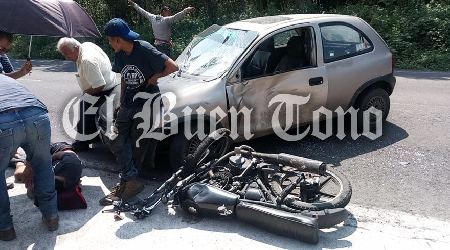 Córdoba.- Lesionado de gravedad, resultó la tarde de este miércoles un motociclista al terminar proyectado contra el pavimento debido a que se impactó contra el parabrisas de un vehículo Chevy, cuyo conductor realizó un corte de circulación al momento de ingresar al fraccionamiento La Herradura, ubicado a un costado de la carretera Estatal Córdoba-Chocamán cerca de la comunidad de Palenque Palotal, teniendo que intervenir paramédicos de Cruz Roja y autoridades de tránsito.