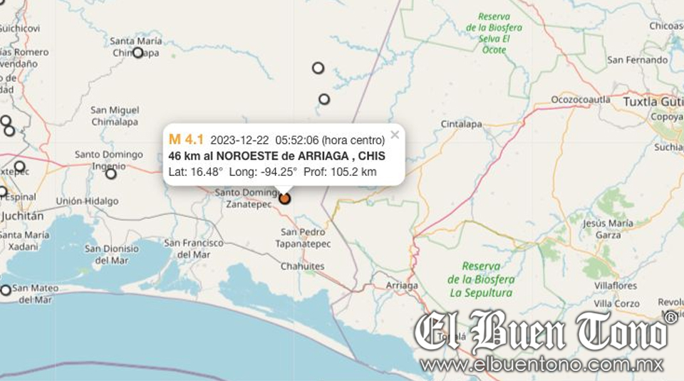 Chiapas.- El Servicio Sismológico Nacional (SSN) informa sobre la actividad sísmica registrada en territorio mexicano durante el día de hoy, viernes 22 de diciembre de 2023.